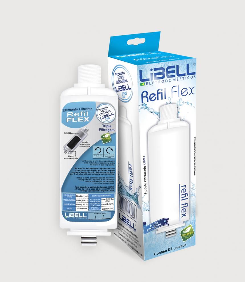 Os Purificadores Acquaflex, Press, Press Baby e Press Side da possuem um refil (elemento filtrante) de tripla filtragem, desenvolvido para uso com água potável, e tem a finalidade de reter impurezas contidas na água, assim como reduzir a concentração de cloro, odores e gostos desagradáveis presentes na água.